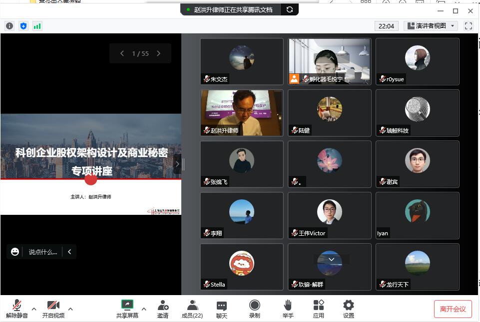 趙律師以《科創企業股權架構設置及知識產權保護》為主題,從企業股權架構設置、股權激勵機制如何設立、企業商業秘密保護8要素、如何防止投資人搶奪公司控制權等多個維度,引用最新法律規范,結合實際案例,為參會的創業者分享“干貨”內容,幫助初創企業搭建合理的股權架構及激勵機制,提升公司治理意識及能力。同時,幫助科創企業了解商業秘密價值,建立企業商業秘密保護體系,為科創企業健康發展提供專業的法律幫助。