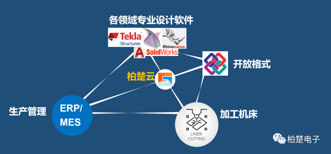 柏楚電子云平臺可以通過云端連接,打通各方,無縫對接專業設計軟件 + IFC開放格式 + 生產管理MES + 加工機床,深耕數字化和智能化激光加工領域,支持不同客戶的深度定制需求,數據采集顆粒度由使用者決定。