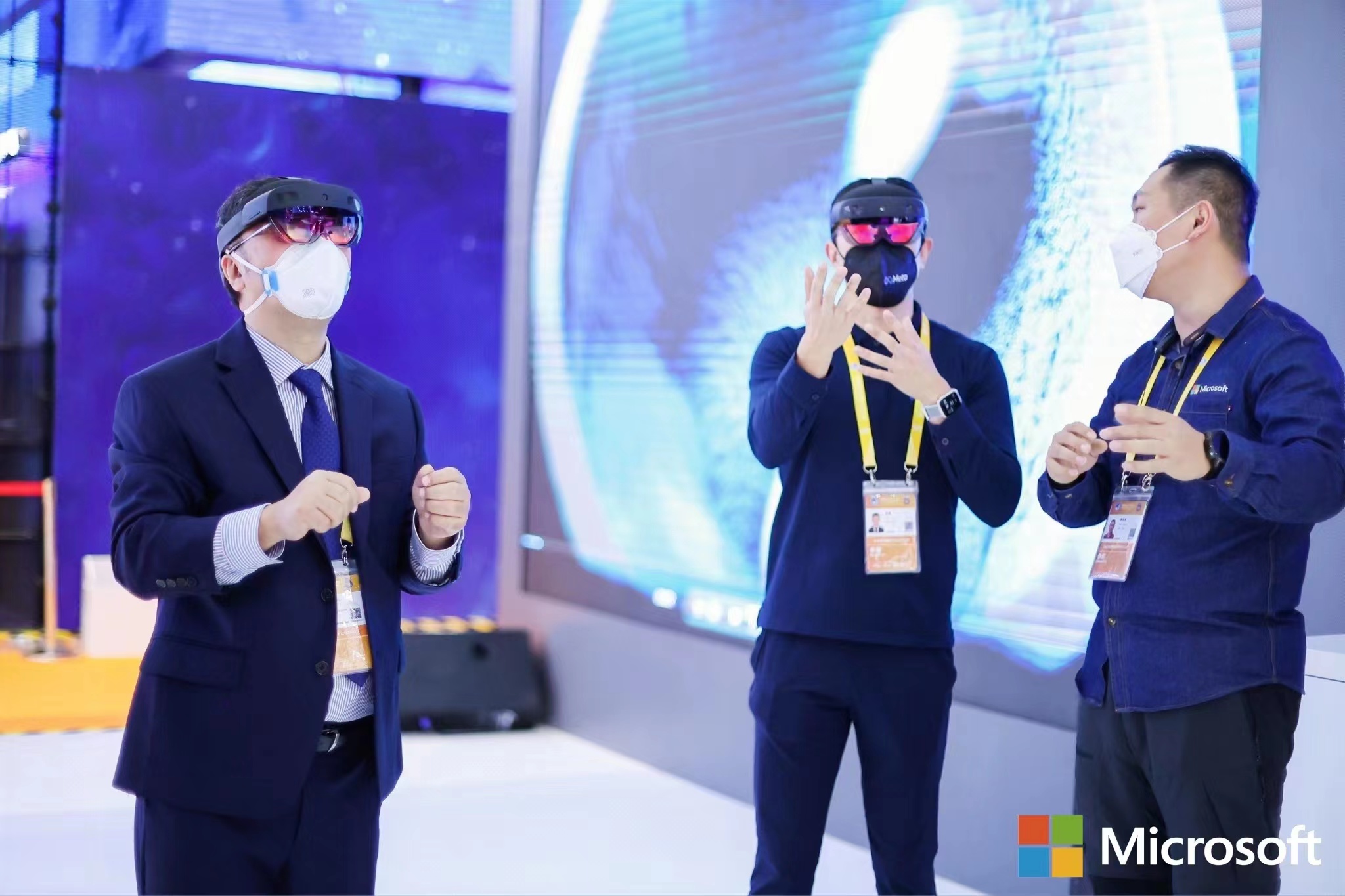 紫竹孵化器虛擬現實頭部企業境騰科技本次全程參會,其展位設在微軟(Microsoft)展臺內,境騰科技為大會帶來了HoloLens2以及最受市場關注的工業元宇宙解決方案。