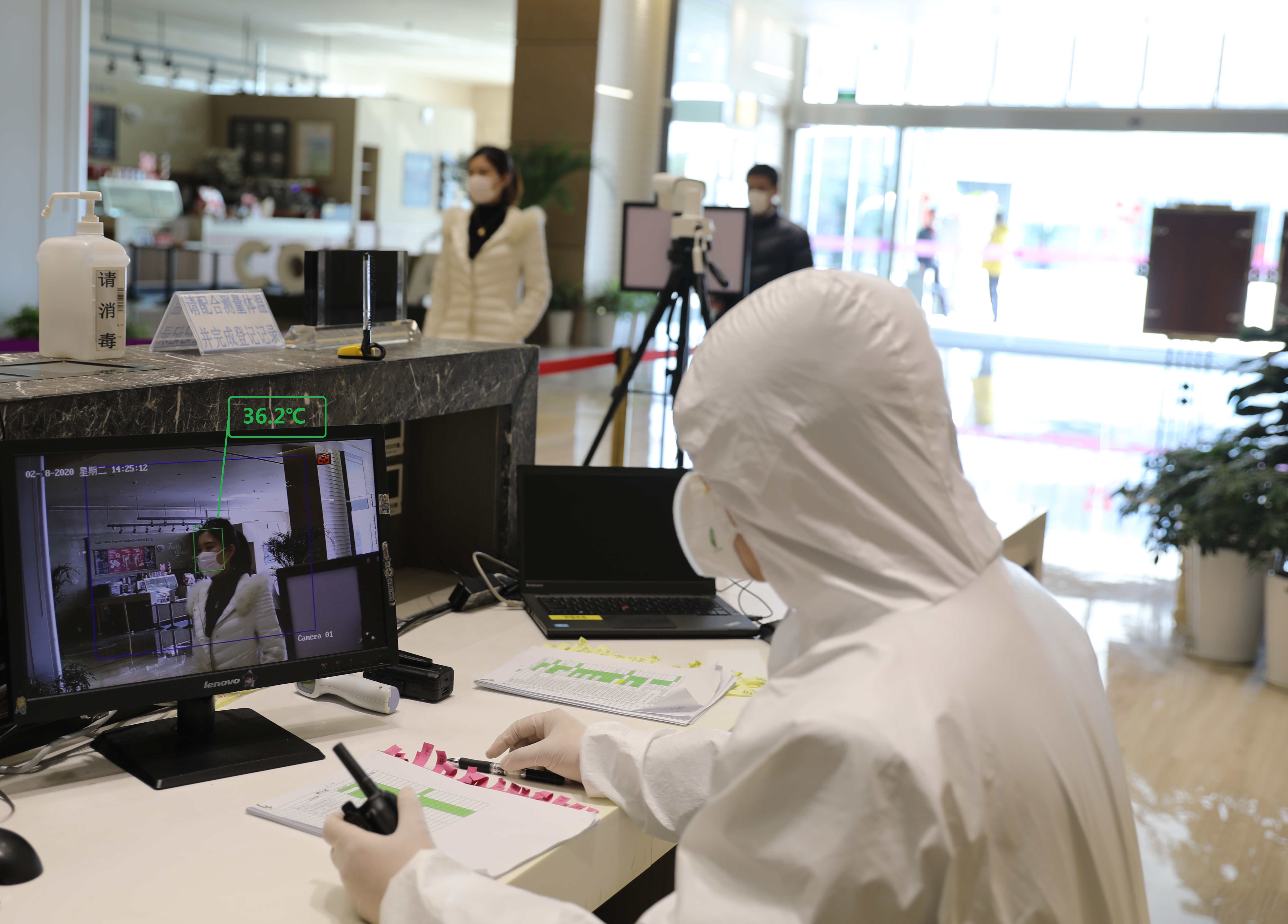 在疫情防控期間,入駐企業(yè)文思海輝技術(shù)公司為我們辦公樓宇提供自主研發(fā)的掃碼系統(tǒng),加快人員審核員工信息,同時(shí)方便后臺(tái)數(shù)據(jù)統(tǒng)計(jì);像我信息科技公司提供了測(cè)溫通道方案,利用熱成像筒機(jī)探頭能夠同步檢測(cè)多人,檢測(cè)速度快,靈敏度高。