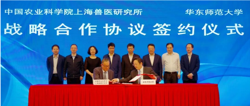 2023年 4月14日,中國農業科學院上海獸醫研究所與華東師范大學簽署戰略合作協議。中國農業科學院黨組書記楊振海、華東師范大學校長錢旭紅、農業農村部國家首席獸醫師(官)李金祥出席活動,中國農業科學院上海獸醫研究所所長、黨委副書記馬志永和華東師范大學副校長施國躍代表雙方簽約。