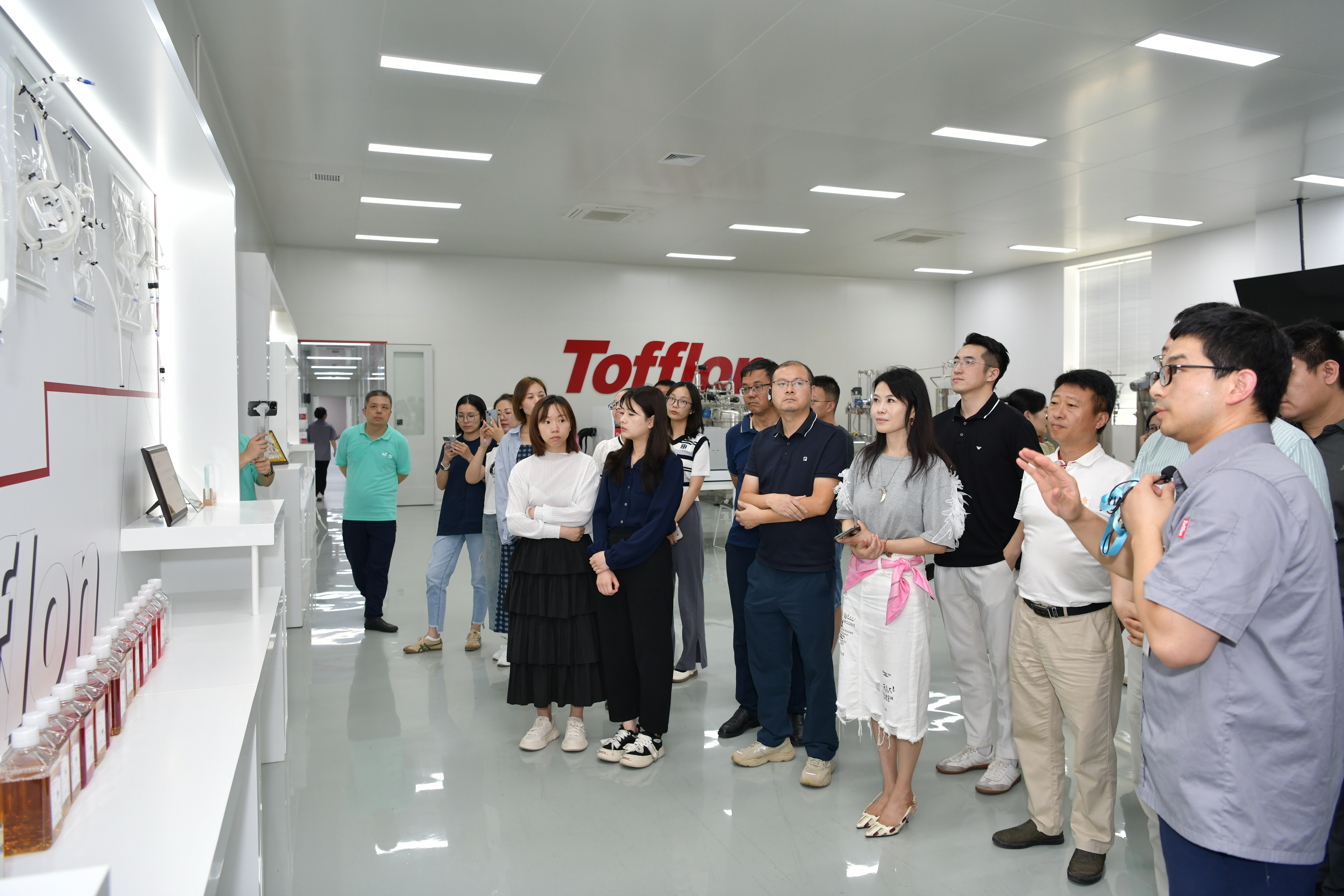 大家參觀了東富龍公司生命科學生產工廠、生物工程展示空間、培養基研發實驗室和注射劑實驗室。東富龍唐惠興副總裁在致辭中對大家的到來表示熱烈歡迎,希望通過本次活動與企業家學習交流,促進區內科技企業相互賦能、共同發展。
