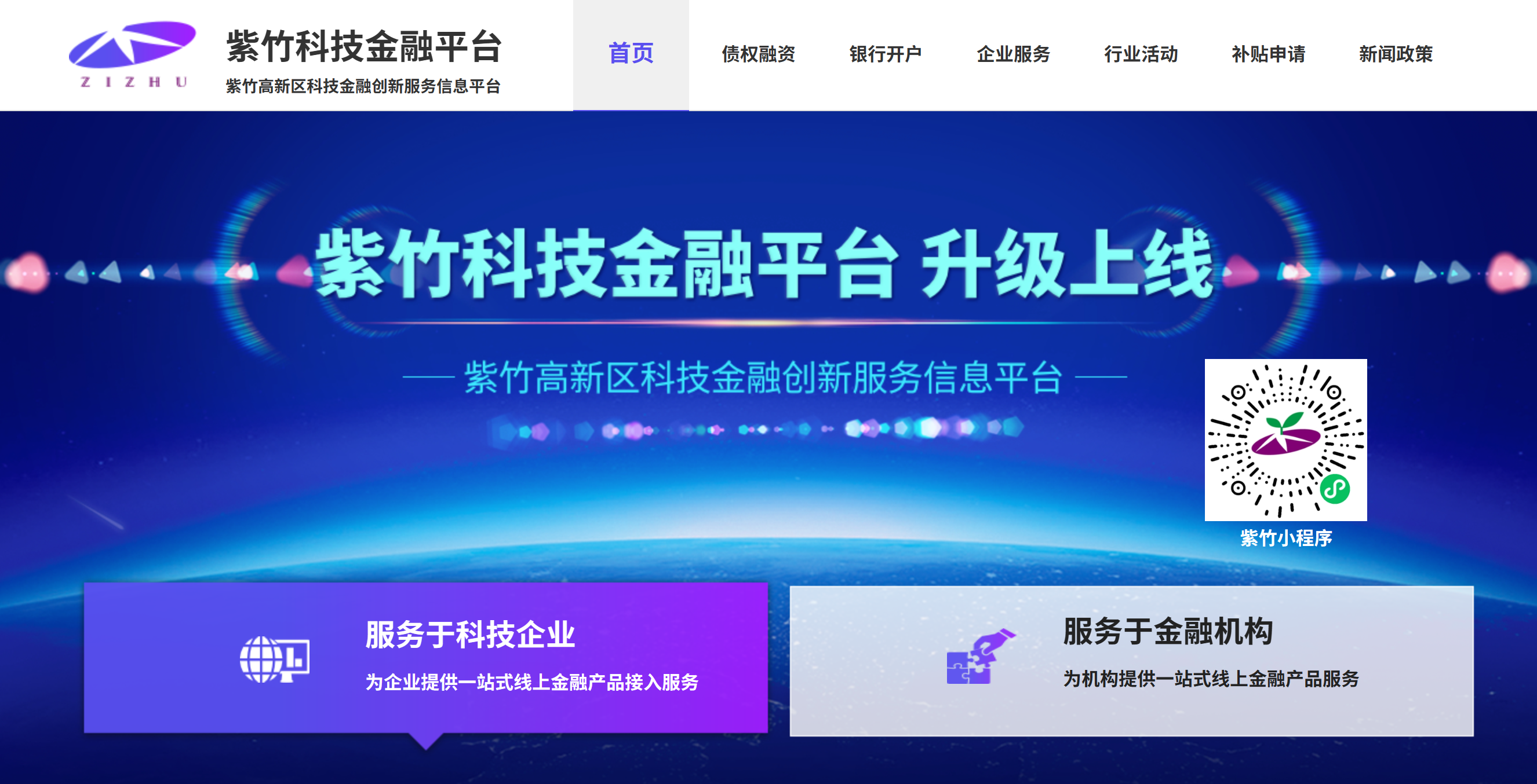 截至目前,紫竹科技金融平臺已建成網(wǎng)站、公眾號、小程序、APP等載體,積累4項軟件著作權,注冊企業(yè)數(shù)千余家,入駐的金融機構幾百家,年資訊閱讀量超10萬次,銀行貸款累計放款額超20億,股權融資額累計超200億元。