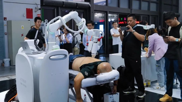 今年展臺上,我們還看到了非夕生態伙伴基于自適應機器人產品所開發的智能理療解決方案,這是一款基于非夕的自適應機器人本體及技術,它深度利用自適應機器人的高精度力控能力,結合人工智能、3D視覺、智能感應等先進技術,為用戶提供高質量、個性化、安全可靠的理療服務。