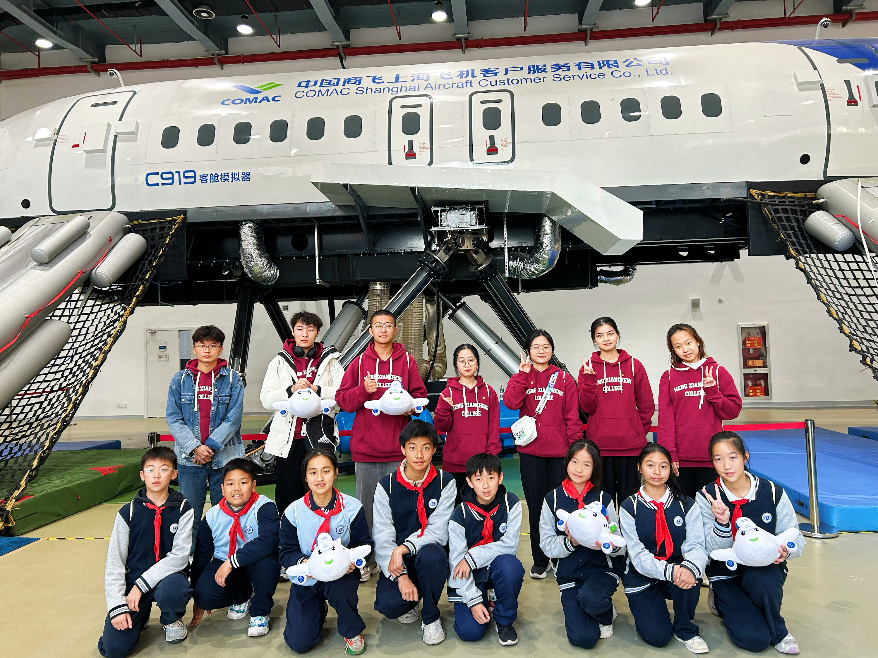 在可口可樂公司,可樂公司團(tuán)支部書記戴赟赟帶領(lǐng)大家參觀企業(yè),并耐心細(xì)致的講解了企業(yè)文化、發(fā)展歷程、主營(yíng)產(chǎn)品。進(jìn)入公司后,隨處可見自助飲料機(jī)也幫助大家實(shí)現(xiàn)了“可樂自由”。隨后來到中國(guó)商飛客服公司,飛機(jī)客服團(tuán)委書記胡啟洋帶領(lǐng)大家進(jìn)入到C919大飛機(jī)乘務(wù)訓(xùn)練艙,體驗(yàn)應(yīng)急技能訓(xùn)練和模擬飛行,切實(shí)感受我國(guó)實(shí)現(xiàn)大型客機(jī)自主研發(fā)背后所付出的不懈努力和來之不易的成果。