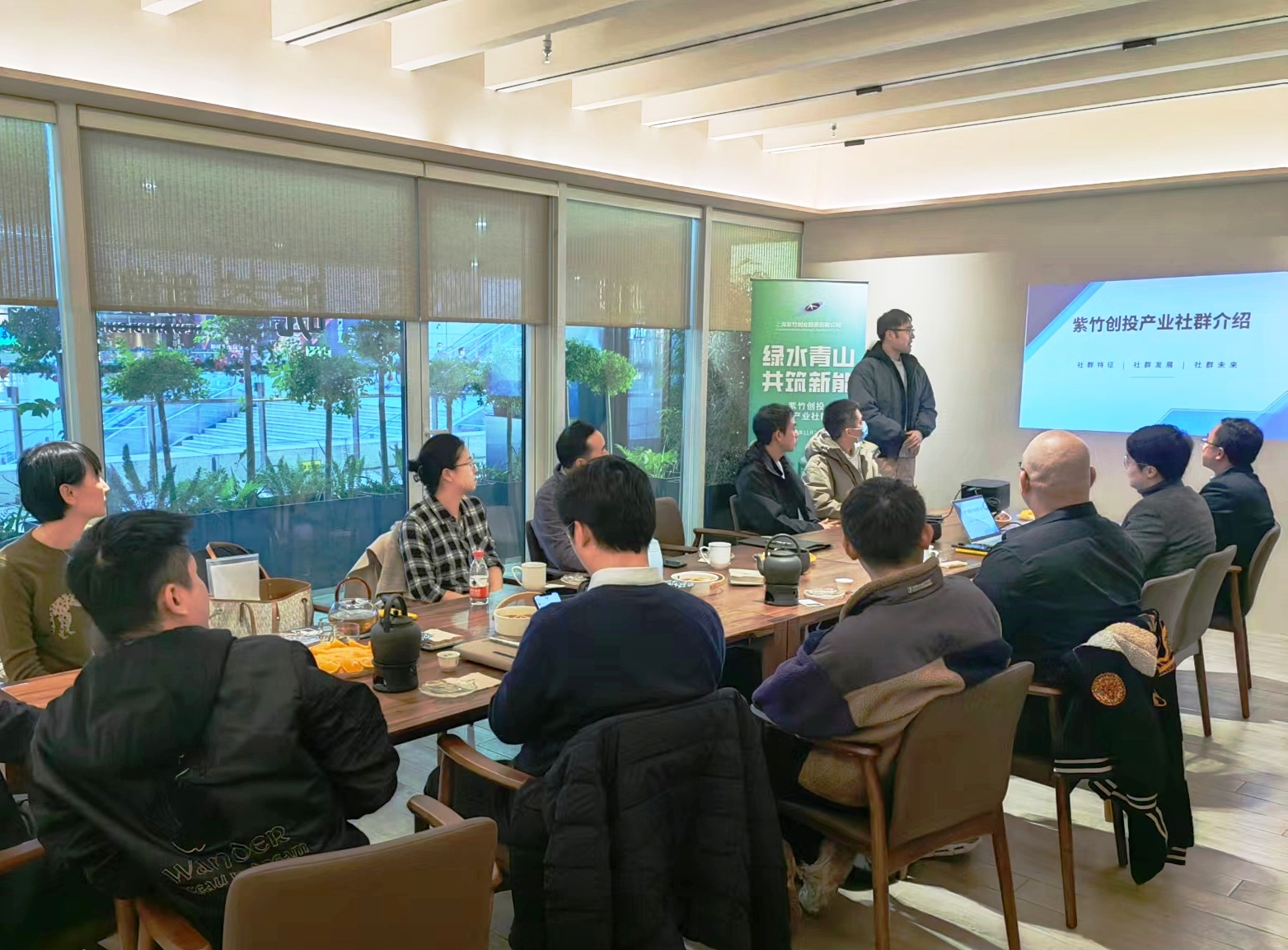 會上,紫竹創投對產業社群的設立背景、發展規劃、職能作用等要素進行了詳實的介紹,讓參會企業對社群具有更加清晰的認知和了解。在交流環節,社群企業對各自公司主營業務、建設情況、創新要點、技術能力、發展需求進行了深入介紹。在產業熱點研討環節,圍繞碳中和政策的利好、碳中和技術的重點方向、可再生新能源的發展情況等,特邀國泰君安創新投資、綠色發展研究中心主任李培旭進行專業的研究分享。最后,紫竹創投發放了整理和編輯制作的“綠能”產業社群企業信息手冊,便于社群企業進一步互相認識和日常聯系;同時發放了紫竹創投設計制作的產業社群徽章標識,以更好提升產業社群形象的可視化、增強產業社群企業的歸屬感。