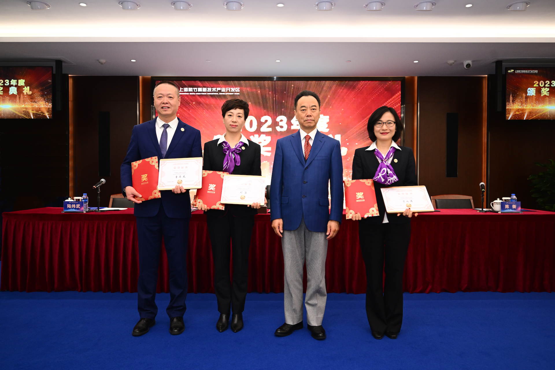高新區董事長、總經理沈雯等領導對獲得“2023年度杰出員工”和“2023年度優秀員工”榮譽的職員進行表彰,并向他們頒發獎牌和獎金。