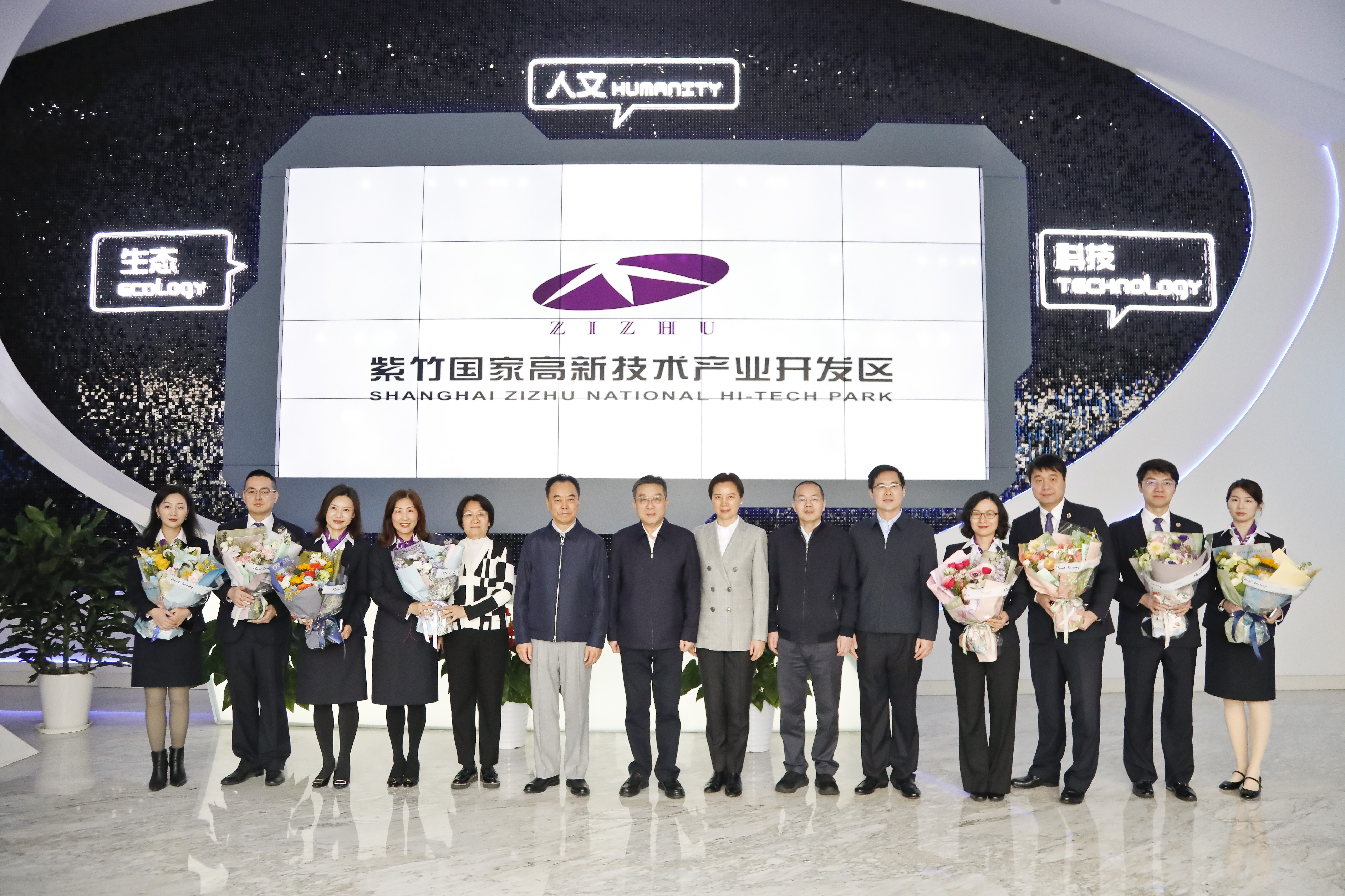 2024年3月5日,上海市人大常委會副主任、市總工會主席鄭鋼淼,市總工會黨組書記、副主席沈軍一行來紫竹高新區開展調研。閔行區委副書記、區長陳華文,區委副書記唐勁松,區人大常委會副主任、總工會主席楊其景等領導陪同,紫竹高新區董事長、總經理沈雯與常務副總經理夏光、高新區總工會主席盧羿熱情接待了鄭鋼淼主席一行。