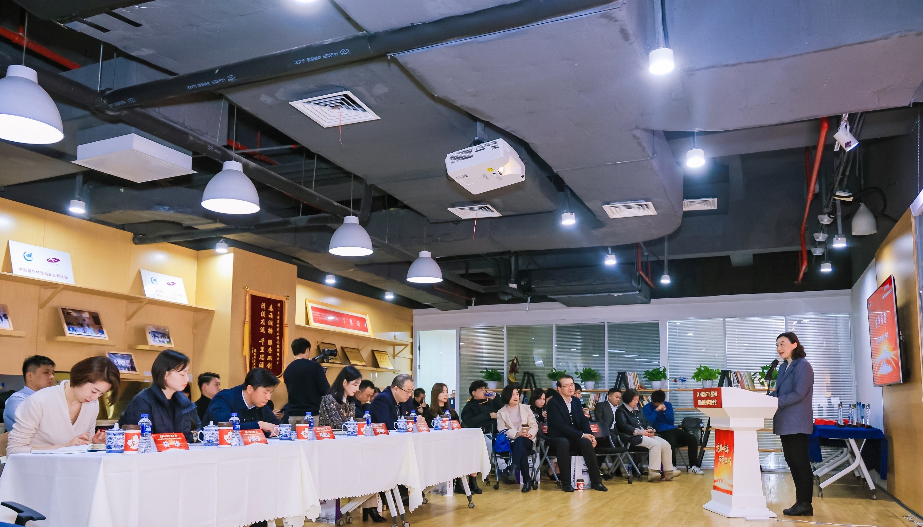 與會(huì)嘉賓聽取了紫竹高新區(qū)2023年度發(fā)展情況介紹,以及孵化器2023年在孵化培育成果、創(chuàng)業(yè)活動(dòng)舉辦、團(tuán)隊(duì)能級(jí)提升等方面取得的卓越成績(jī)與發(fā)展規(guī)劃。