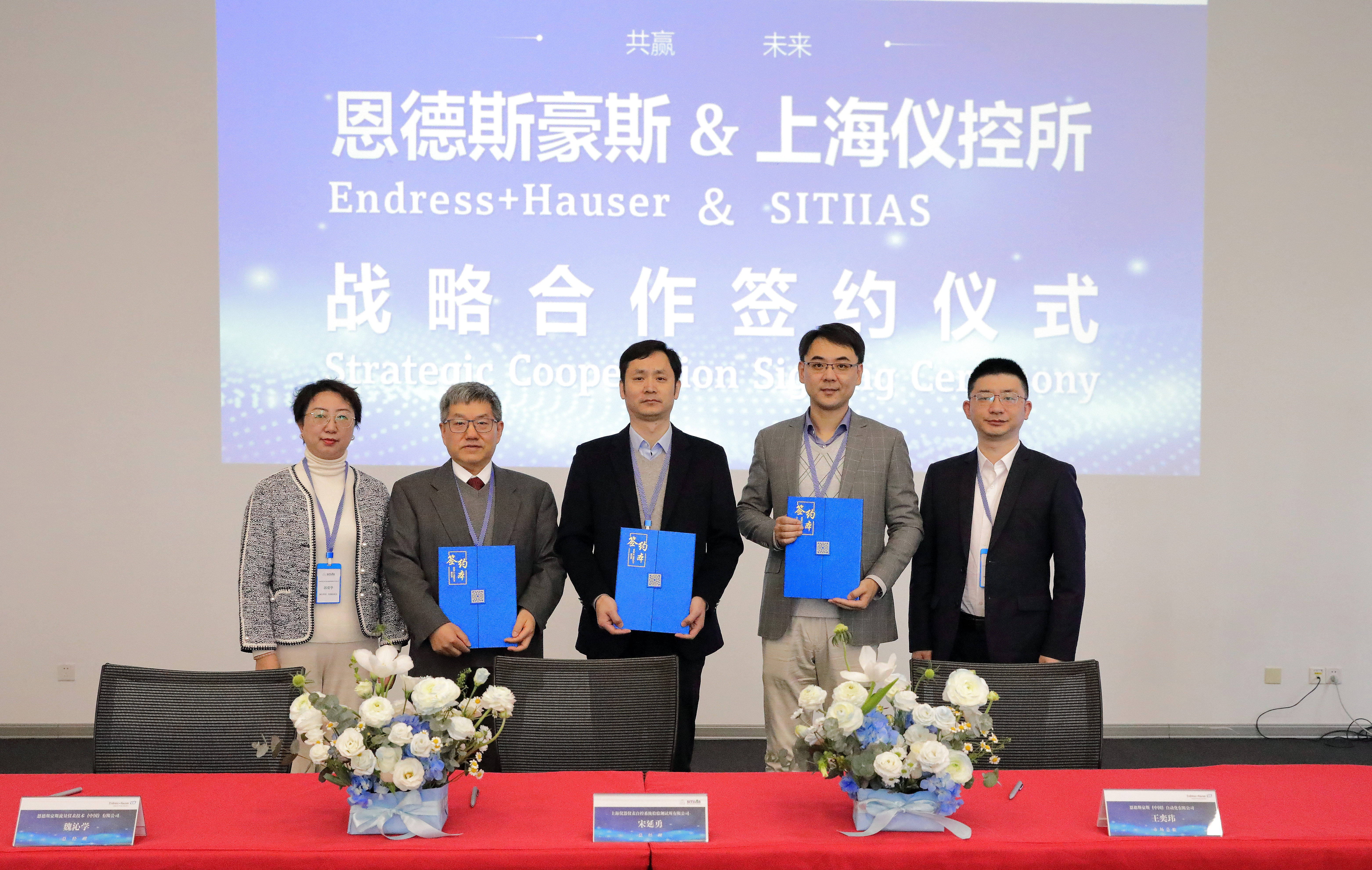 簽約儀式上,上海儀控所執(zhí)行董事郭愛華、總經(jīng)理宋延勇與E+H中國流量廠總經(jīng)理魏沁學(xué)、中國市場(chǎng)總監(jiān)王奕瑋簽署了戰(zhàn)略合作協(xié)議,開啟雙方合作新篇章。