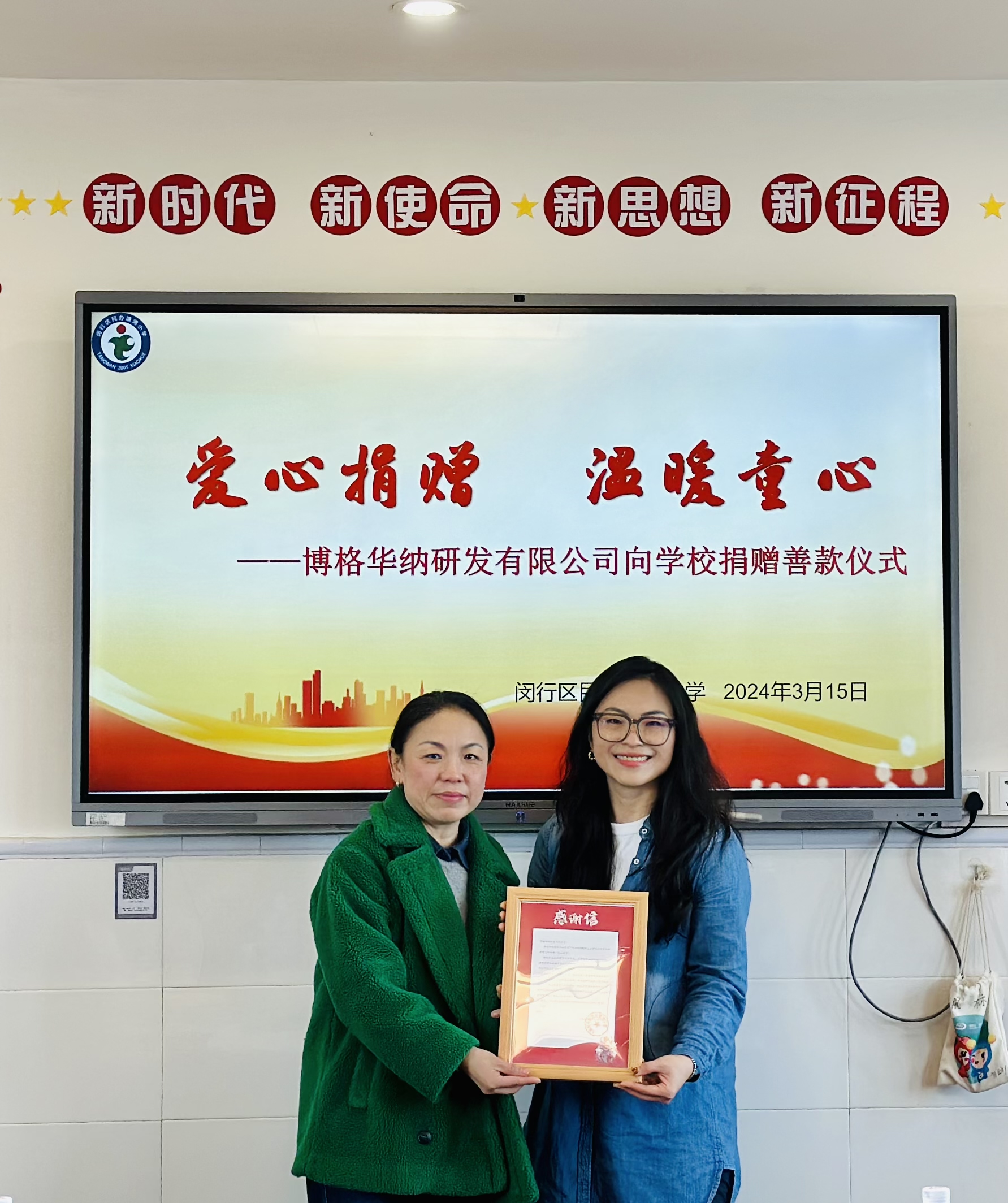 博格華納與塘灣小學雙方簽署了捐贈協議。孫冰凌女士代表博格華納動力驅動系統事業部向塘灣小學捐贈助學金人民幣4,9162.5元,這筆善款是由該事業部舉辦的慈善義賣活動及全員參與公益體育運動獲得的獎金籌集所得,將用以學校教學設備的采買,助力義務教育均衡發展。李玲校長代表學校接受捐贈,并向孫冰凌女士贈予捐贈感謝信。