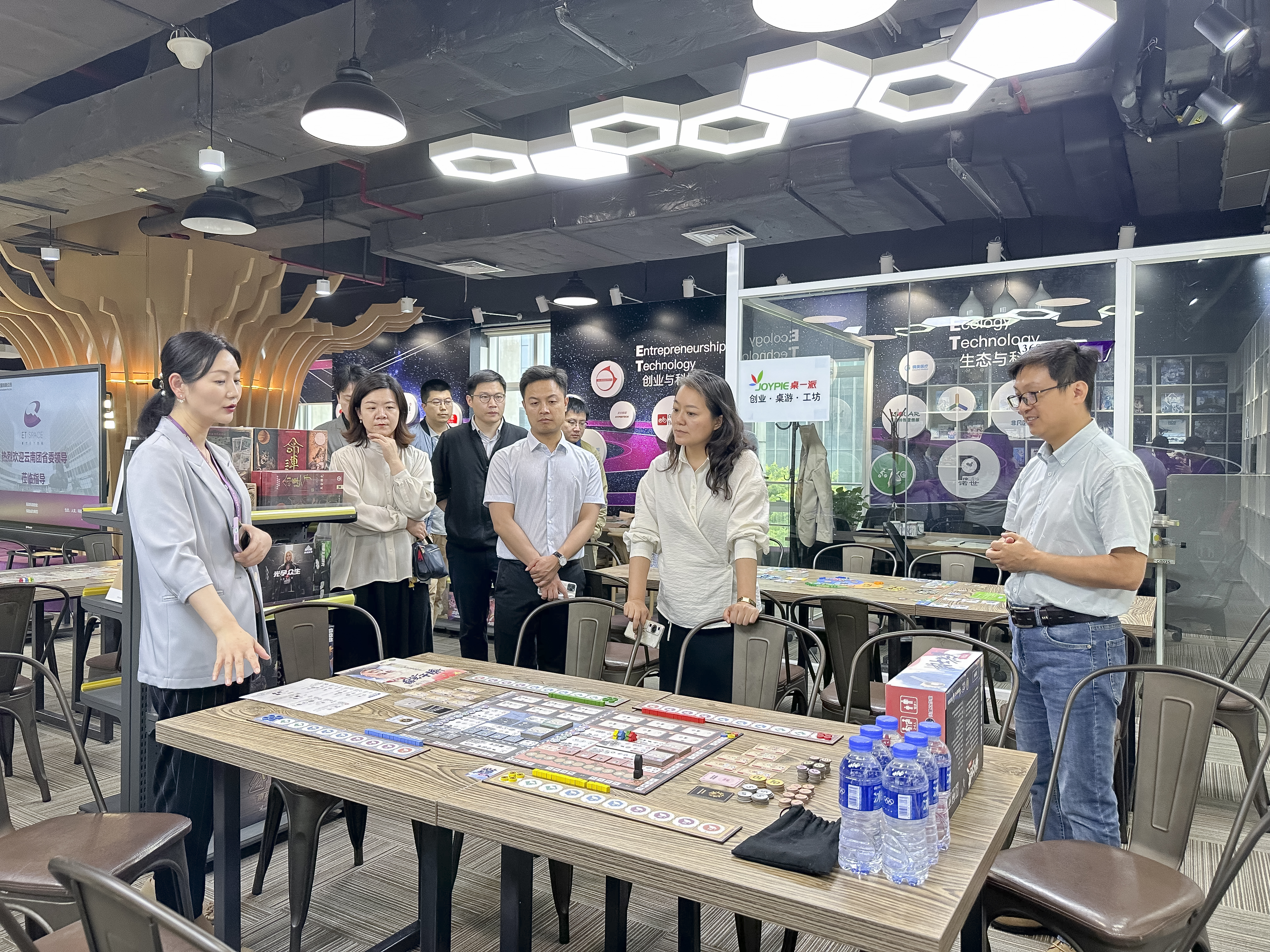 許思思副書記一行參觀了紫竹創業孵化器(ET空間),零距離體驗高新區青年創業孵化的全過程,聽取了丁嘉敏總經理對ET空間孵化理念和特色產業培育、青年創業等情況的介紹。參觀過程中,大家體驗了由閔行共青團、紫竹團委與創業企業卓百文化三方聯合開發的紅色桌游產品《青年之路》等,感受到共青團鼓勵青年創新、服務青年創業的濃厚氛圍。大家在創業企業境騰科技體驗虛擬現實的科技產品,對話創業青年。鄭曉珺副書記介紹到,閔行和紫竹是青年創業的沃土,創業青年們可以在共青團和孵化器“善搭平臺、提升服務、強化政策”而營造的良好創新生態下不斷拼搏、穩步成長。