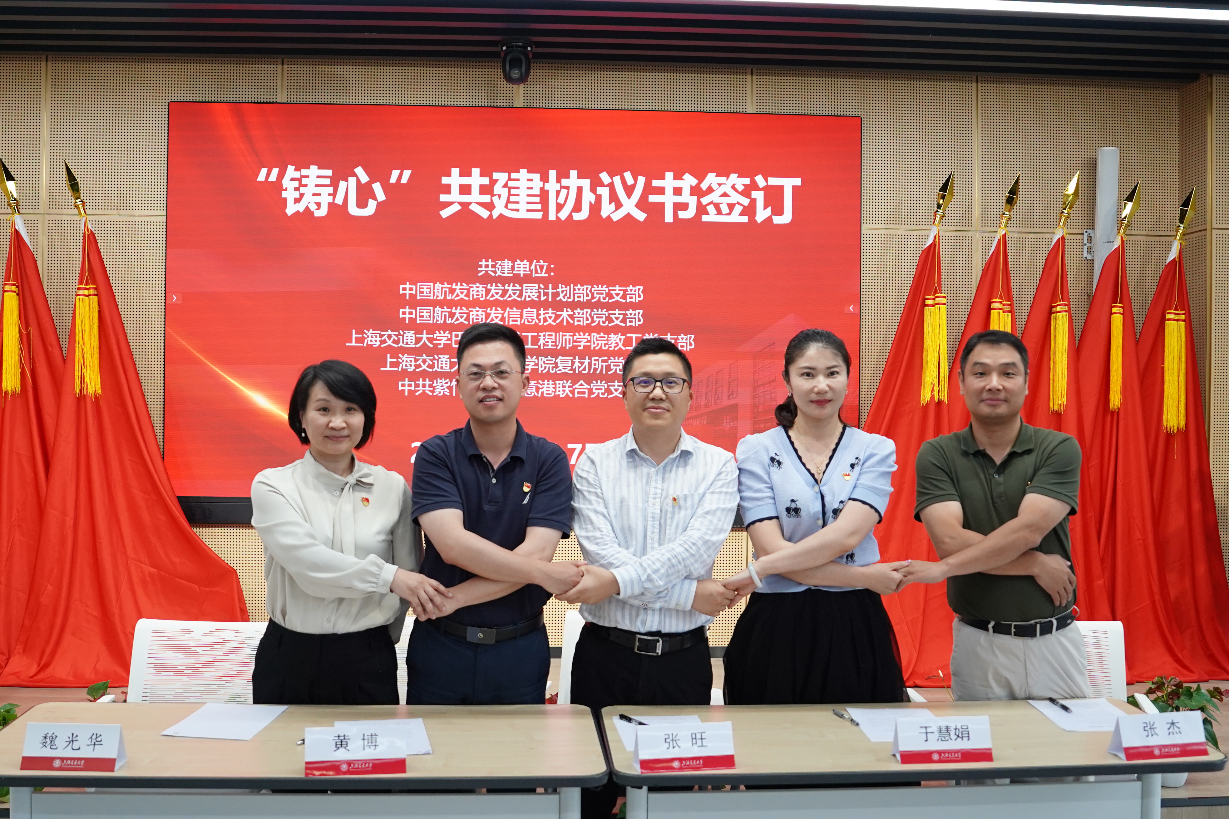 七·一前夕,上海交通大學巴黎卓越工程師學院教工黨支部與中國航發商發發展計劃部黨支部、中國航發商發信息技術部黨支部、紫竹數字創意港聯合黨支部、上海交通大學材料學院復合材料研究所黨支部,立足“國之大者、國之重器”的共同使命擔當,簽訂黨支部共建協議,結為“鑄心”共建單位。