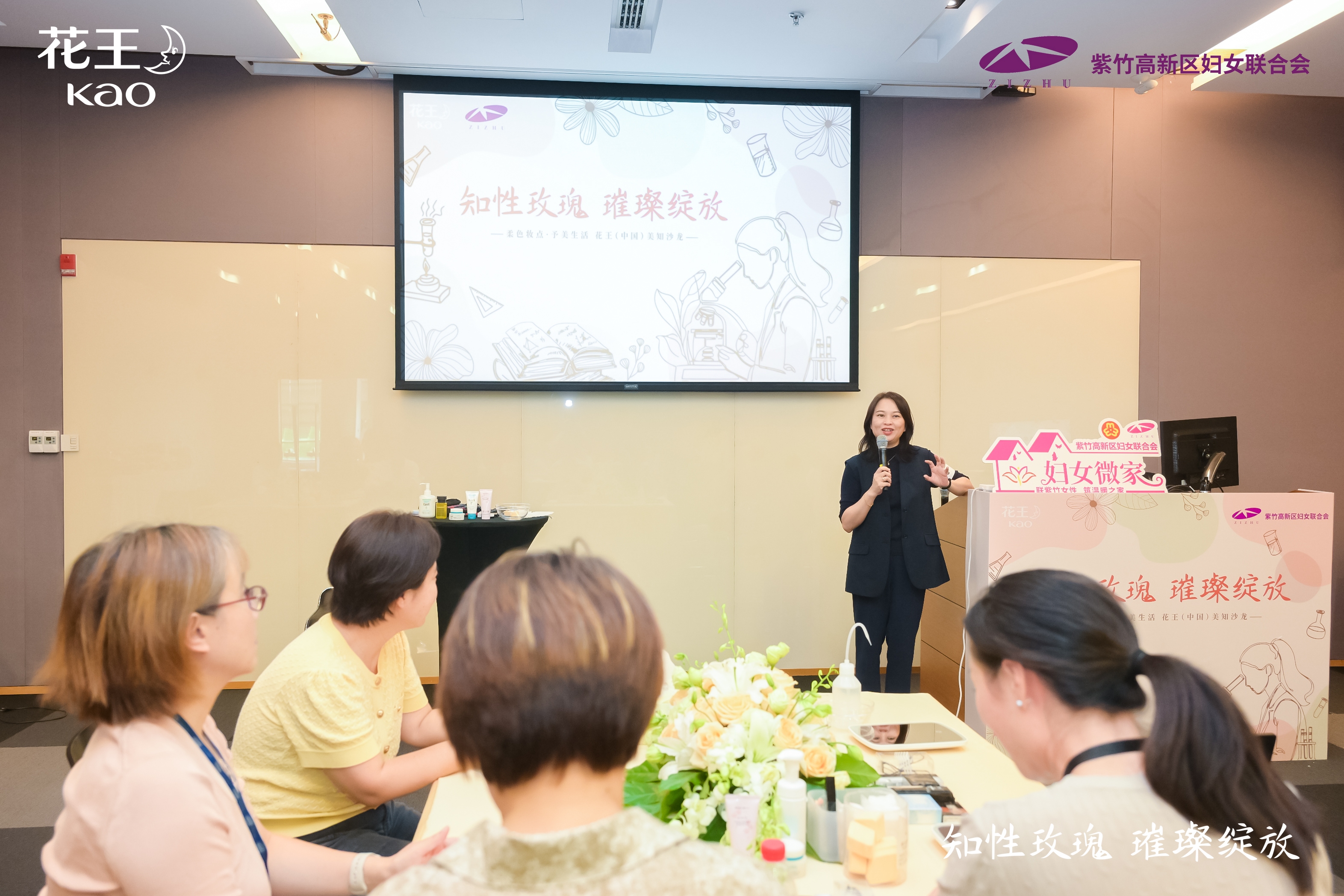 為關心關愛高新區科技女性群體,煥發她們在職場中的精神風采,讓美麗與智慧同行,2024年9月23日下午,紫竹高新區婦聯攜手花王(中國)在微軟公司舉辦秋季煥膚美妝沙龍活動,為近四十位來自高新區各個企業的女性科技工作者提供沉浸式的護膚、美妝專業指導,助力紫竹女性綻放魅力光彩。