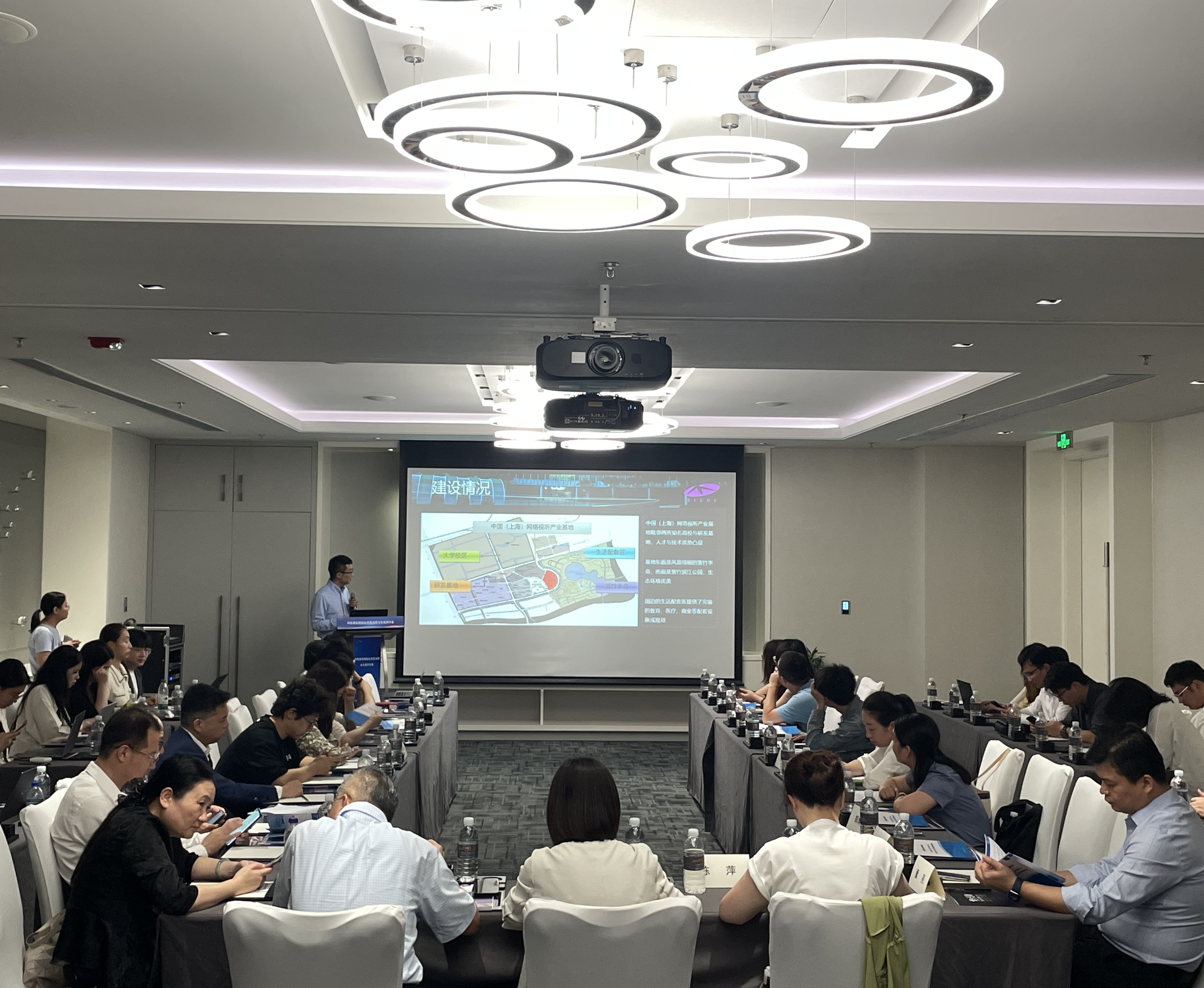 中國(上海)網(wǎng)絡(luò)視聽產(chǎn)業(yè)基地管理辦公室在研討會上介紹了產(chǎn)業(yè)基地針對微短劇的備案、拍攝等提供的專項服務(wù)以及對市級扶持政策的配套落地情況,通過高新區(qū)的推介,吸引更多企業(yè)實地落戶,助力產(chǎn)業(yè)集聚發(fā)展。