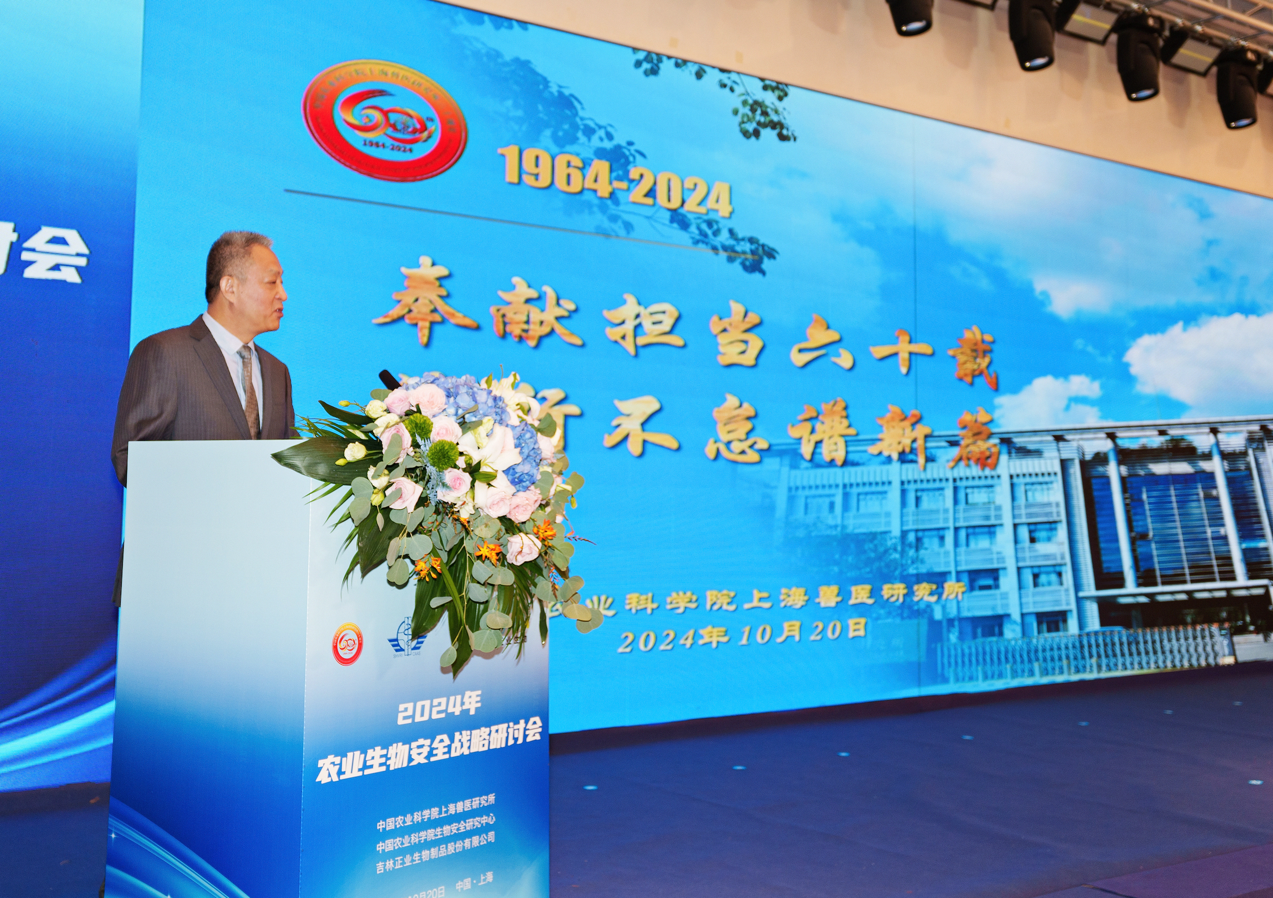 近日,2024年農(nóng)業(yè)生物安全戰(zhàn)略研討會在中國農(nóng)業(yè)科學(xué)院上海獸醫(yī)研究所組織協(xié)調(diào)下順利召開,來自全國涉農(nóng)領(lǐng)域的院士專家,科研院所、高校及上海市科技、農(nóng)業(yè)主管部門、合作企業(yè)代表齊聚上海,圍繞重大動植物疫情風(fēng)險分析、可持續(xù)治理技術(shù)體系研究,聚焦重大疫病預(yù)警及防控策略,共商農(nóng)業(yè)生物安全公共政策與發(fā)展對策,為保障國家農(nóng)業(yè)生物安全、科技自立自強提供重要指導(dǎo)。農(nóng)業(yè)農(nóng)村部原國家首席獸醫(yī)師、中國鄉(xiāng)村發(fā)展協(xié)會執(zhí)行副會長兼秘書長李金祥,中國農(nóng)業(yè)科學(xué)院副院長、黨組成員孫坦,上海市農(nóng)業(yè)農(nóng)村委員會黨組成員、副主任張秩通,中國工程院院士、中國農(nóng)業(yè)大學(xué)動物醫(yī)學(xué)院院長沈建忠,中華全國婦女聯(lián)合會副主席、中國科學(xué)院院士、中國農(nóng)業(yè)科學(xué)院重大任務(wù)總首席陳化蘭,中國動物衛(wèi)生與流行病學(xué)中心黨組書記、副主任吳晗,上海市農(nóng)業(yè)科學(xué)院黨委書記、院長蔡友銘,吉林正業(yè)生物制品股份有限公司總經(jīng)理宋松林出席會議,上獸研黨委書記、副所長韓雪松主持會議。