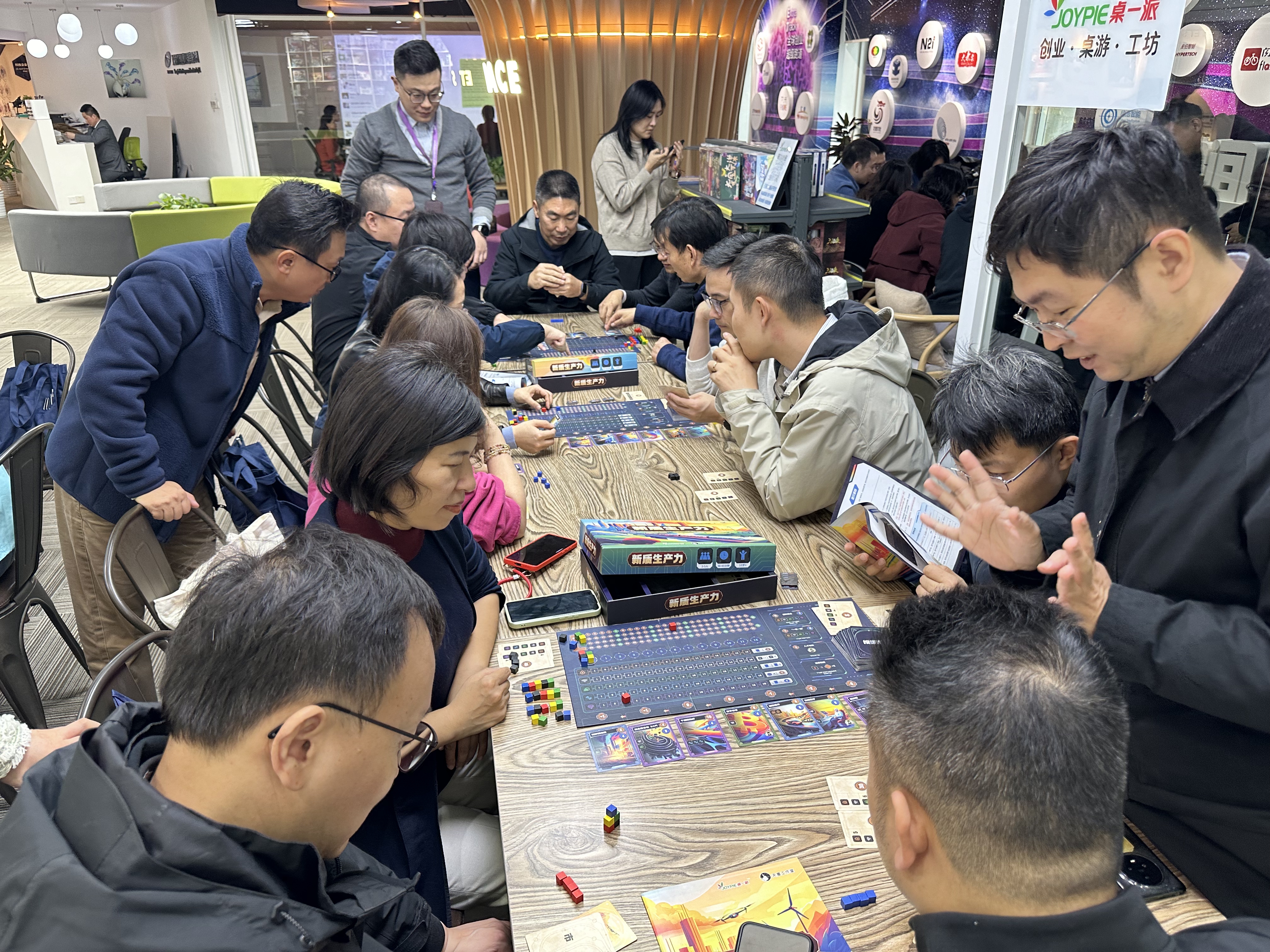 隨后,大家來到紫竹ET空間,參觀了紫竹創新創業孵化模式和成果,并體驗紫竹優秀科創企業代表卓百文化設計打造的“新質生產力”主題桌游。大家通過桌游形式沉浸式參與投資創新產業、發掘前沿技術和培育新質生產力等各項科創服務環節,鍛煉策略思維,體驗經營樂趣,切實感受到了當代科創浪潮的澎湃活力。