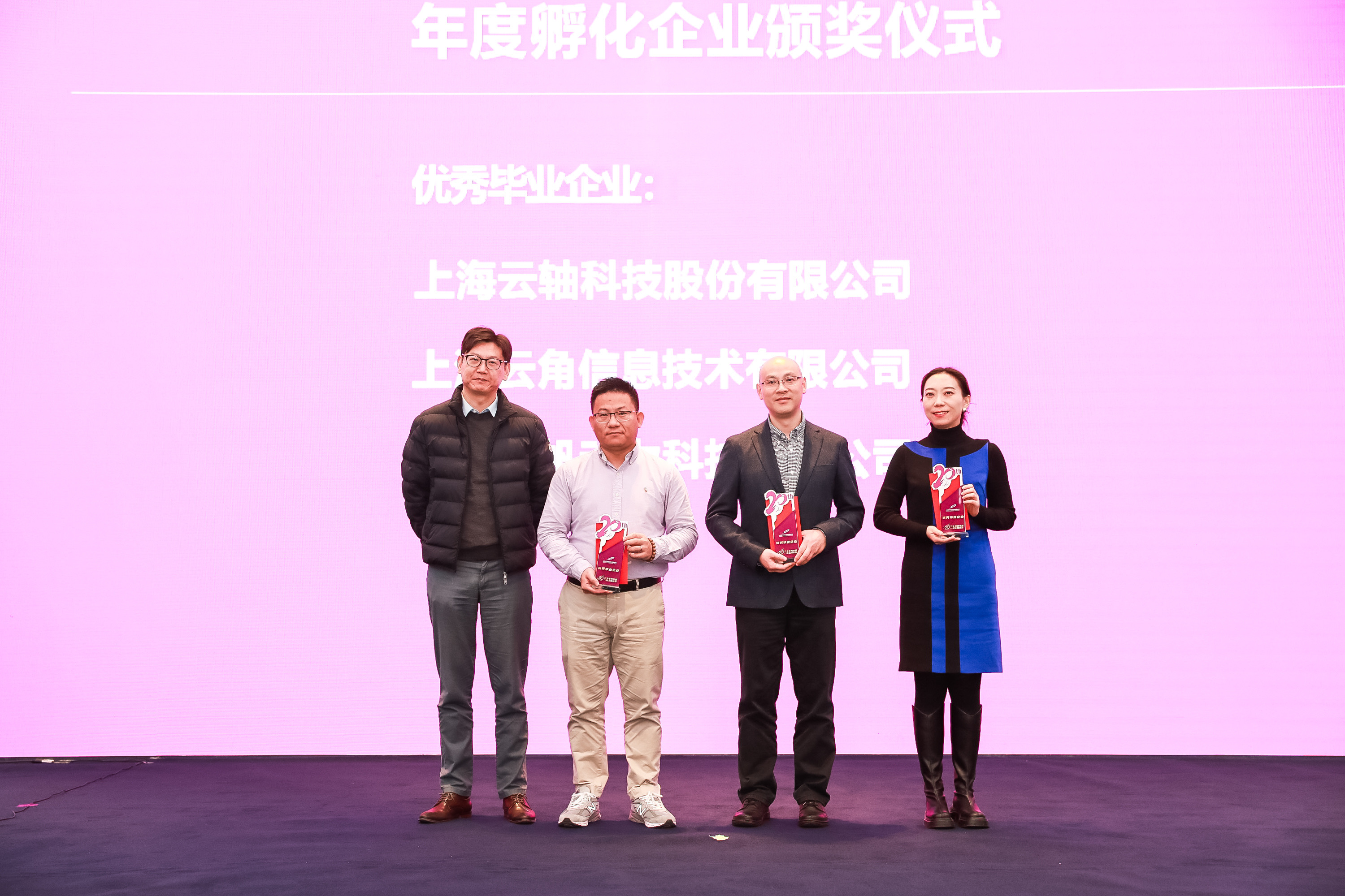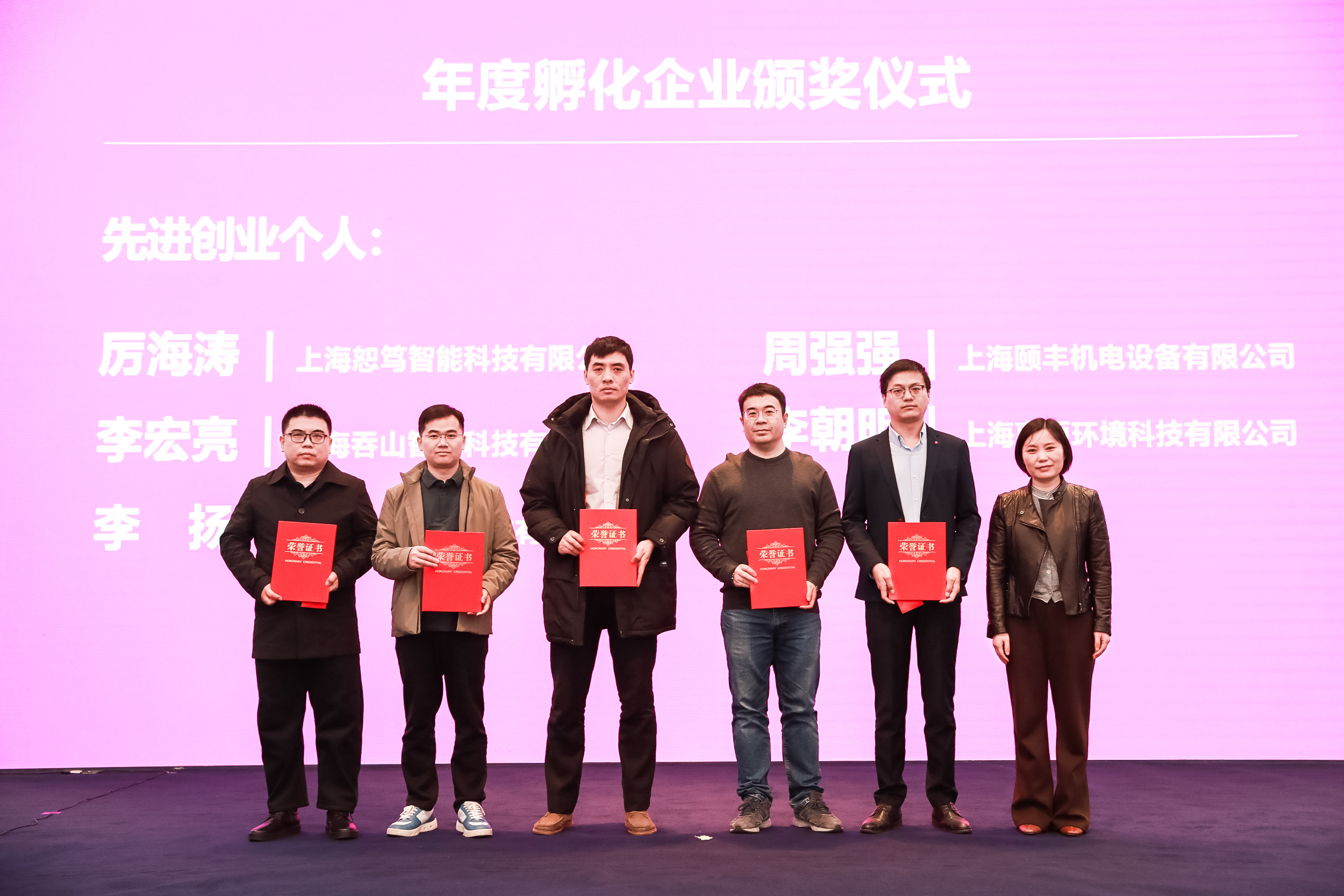 閔行區(qū)人力資源和社會保障局副局長唐治國、上海交通大學(xué)電子信息與電氣工程學(xué)院院長郭小軍、上海創(chuàng)業(yè)投資行業(yè)協(xié)會副秘書長楊建軍、吳涇鎮(zhèn)社區(qū)黨群服務(wù)中心主任楊希等領(lǐng)導(dǎo)分別為“云軸信息”“慕帆動力”“云角信息” “螣龍科技”等優(yōu)秀科創(chuàng)企業(yè)及先進創(chuàng)業(yè)個人頒發(fā)獎杯和榮譽證書。