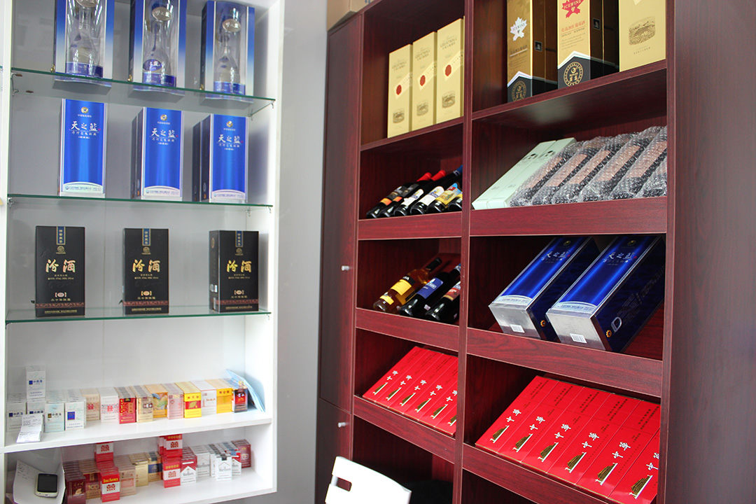 高新區商業配套新舉措——煙酒、飲品銷售點。煙店毗鄰數碼港羅森超市,以經營各類香煙、名酒為主。